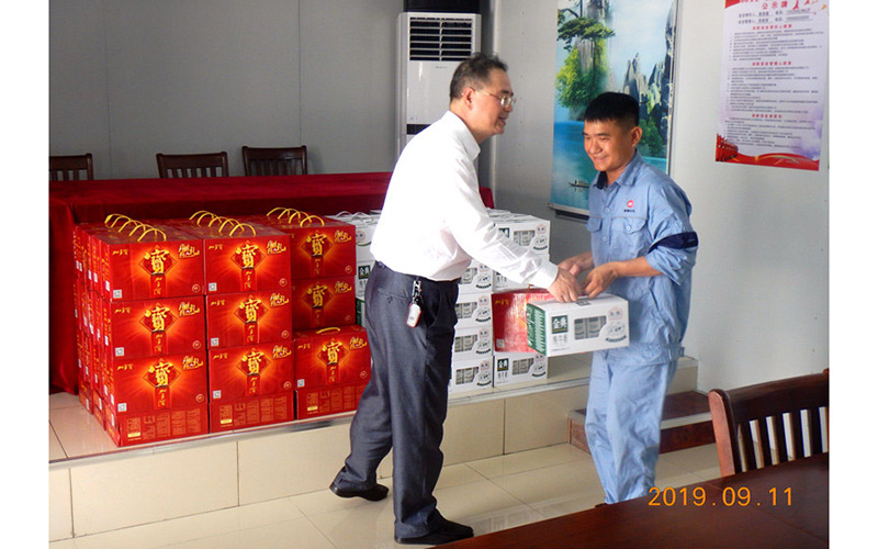 曾一平董事长亲切慰问分公司员工,并为员工发放慰问品。